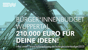 Die Stadt Wuppertal stellt in Kooperation mit der Gemeinschaftsstiftung für Wuppertal, der BARMER und der Firma KNIPEX in diesem Jahr 210.000€ für gemeinwohlorientierte Ideen aus der Bürgerschaft zur Verfügung. Alle Wuppertaler*innen können eigene Vorschläge einreichen und in mehreren Abstimmungsphasen über die Gewinnerideen abstimmen. Diese werden in den Haushalt der Stadt Wuppertal eingeplant und ab dem Jahr 2026 umgesetzt.